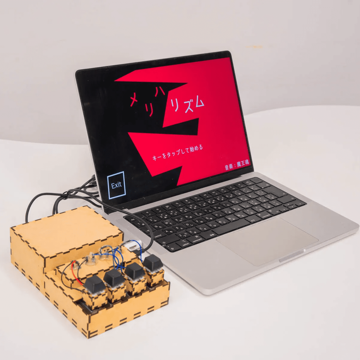 本作品は、通常の音楽ゲームに打鍵の強弱判定を追加した音楽ゲームです。